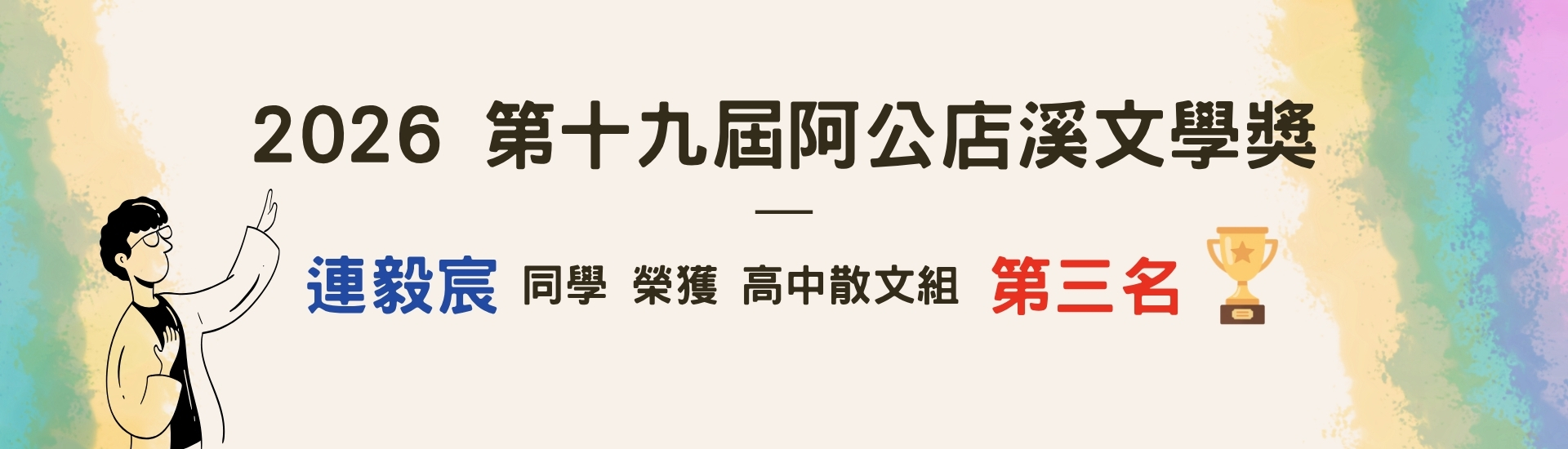 | 2026-03-04 | 狂賀賀!本校高中部604劉秉叡 獲選埃及青少年世界盃全台唯一代表 | 榮譽事蹟 | 體育組 | 93 |