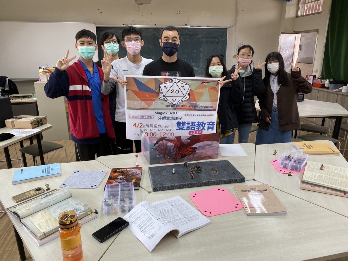 - 配合雙語實驗班學生英文科課程之學習,設計補充教材,實施教學,激發學生學習興趣,並以3年期程逐步全英語教學為目標。