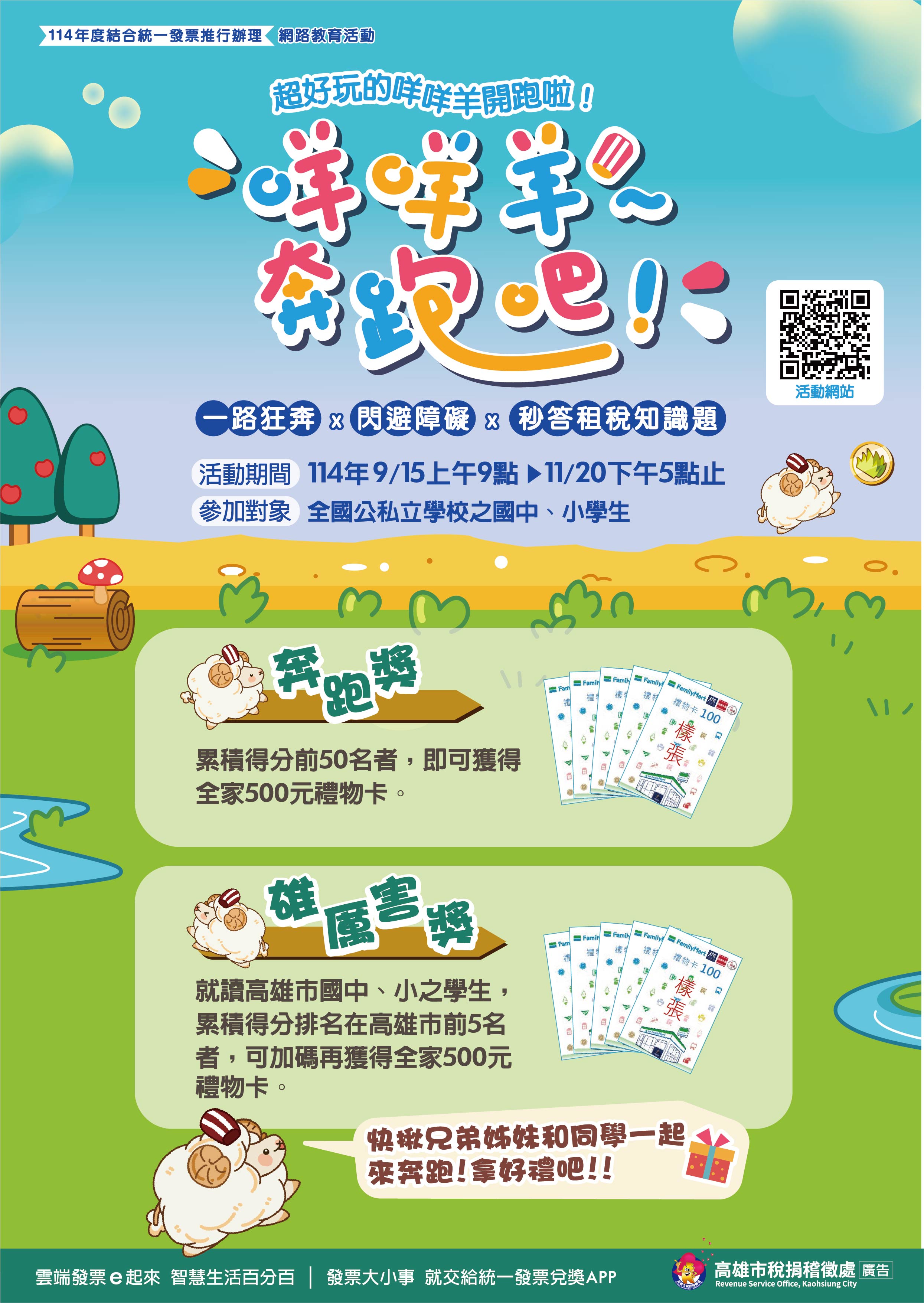 校園資訊 公告主旨 咩咩羊~奔跑吧! 發佈日期 2025 年 9 月 19 日 發佈單位 訓育組 公告類別 活動資訊 公告等級 無 點閱次數 57 公告內容 一、活動期間:即日起至114年11月20日下午5點止。 二、活動辦法:至活動網站進行會員註冊,於活動期間完成觀看指定動畫影片及遊戲闖關累積積分,即有機會獲得好禮,另就讀本市國中小學生可再享加碼獎勵。 三、詳情請至活動網站(https://khc.fastez.net/index)或本處官網下方「宣導專區」廣告頁點選本活動進入查詢。 相關附件 咩咩羊~奔跑吧! 咩咩羊~奔跑吧! 檔案名稱檔案大小檔案格式下載咩咩羊~奔跑吧!.jpg792.60 KB新視窗開啟檔案 咩咩羊~奔跑吧!.jpg 【2025-09-19】南華大學生命書寫文學獎徵稿辦法 【2025-09-19】國立中山大學應用數學系「雙週一題網路數學問題徵答」
