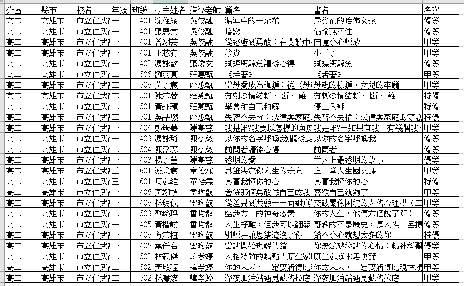 | 公告主旨 | 1141009全國高中讀書心得得獎公告,恭喜本校表現優異! |