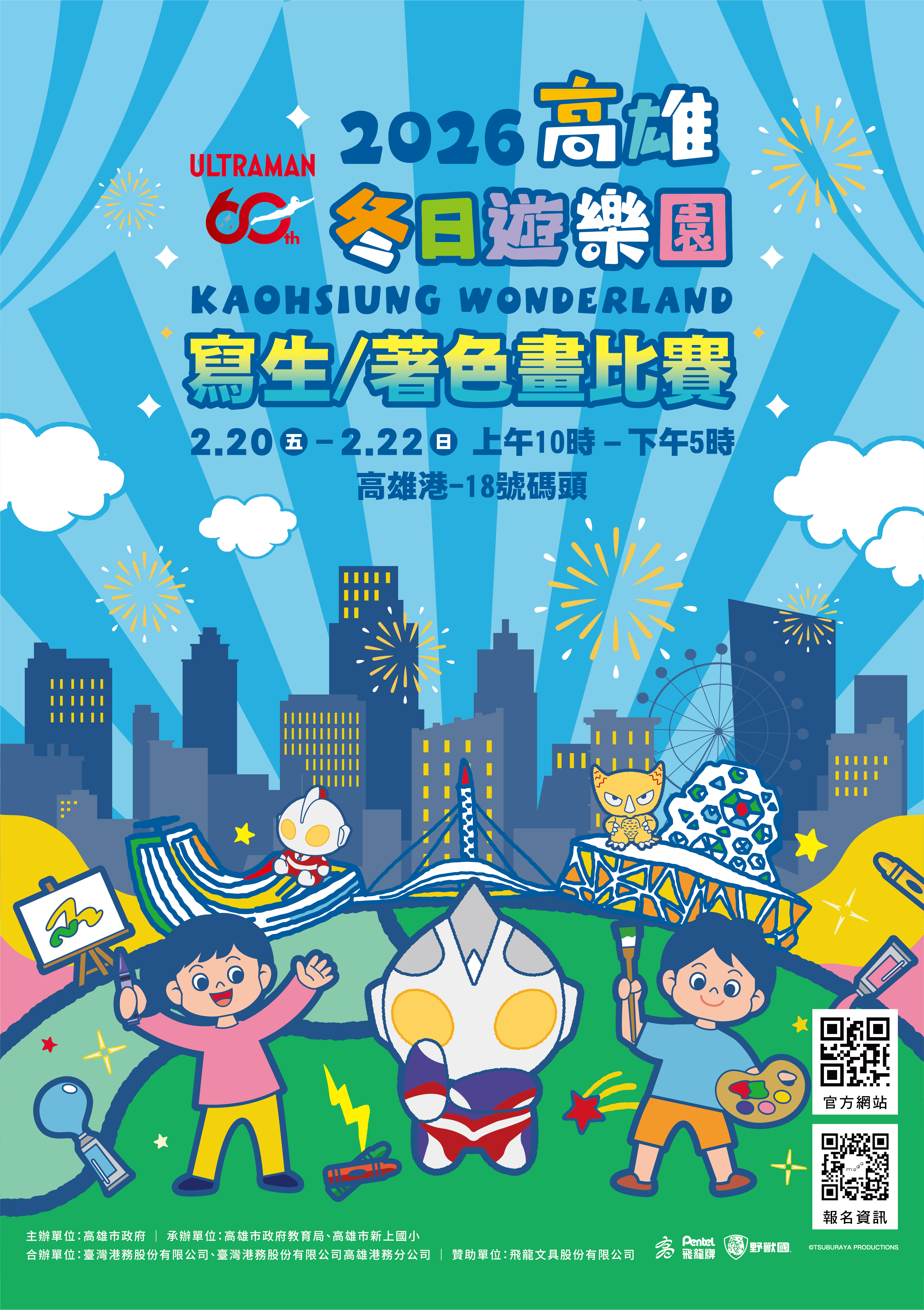 校園資訊 公告主旨 2026冬日遊樂園-寫生暨著色畫比賽 發佈日期 2026 年 1 月 21 日 發佈單位 訓育組 公告類別 活動資訊 公告等級 轉知 點閱次數 49 公告內容 (一)報名方式 1、線上報名:1月24日(星期六)上午10時開放報名至2月22日(星期日),請透過高雄數位市民系統進行報名(報名網址:https://gov.tw/oAc),每日報名上限共3,000人,初次登入系統需綁定Line帳號進行註冊(非高雄市居民亦可註冊)。 2、現場報名:每日上限300人。 (二)比賽地點:高雄港-18號碼頭(高雄港旅運中心旁)。 (三)比賽及繳件方式:現場領取畫紙並於現場創作後繳件。 (四)競賽組別: 1、寫生類:全國高級中等學校及國民中學學生,均可參加,分成高中組、國中組等二組。 2、著色畫類:全國國民小學及幼兒園之學生,均可參加,分成國小高年級、國小中年級、國小低年級及幼兒園等四組。 (五)凡參加學生完成報名者,現場贈送12色粉蠟筆1組,1人限報名1類,不可重複報名,數量有限,送完為止。 (六)凡參加學生完成繳件者,可參加一次現場扭蛋活動(有機會獲得驚喜好禮),1人限1次,不可重複,數量有限,送完為止。 相關附件 冬日026冬日遊樂園-寫生暨著色畫比賽 冬日026冬日遊樂園-寫生暨著色畫比賽 檔案名稱檔案大小檔案格式下載冬日026冬日遊樂園-寫生暨著色畫比賽.jpg4.76 MB新視窗開啟檔案 冬日026冬日遊樂園-寫生暨著色畫比賽.jpg 【2026-01-21】財團法人周大觀文教基金會(以下簡稱周大觀基金會)辦理周大觀抗 ... 【2026-01-21】114學年度仁武高中第12號第1次甄選公告(高中部體育科(田徑專長) ...